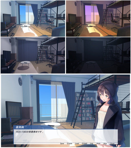 素材集/dvd > 背景素材集 > 04 部屋 家の中の様々なシーンで使える 10場面を、それぞれ昼、夕方、夜の3種類(玄関、洗面所を除く)で、合計 28場面。